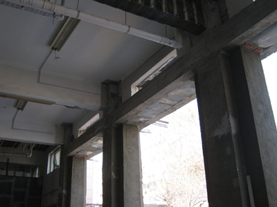 加固改造內(nèi)容:柱子加大截面、新加梁、鋼筋網(wǎng)抹灰